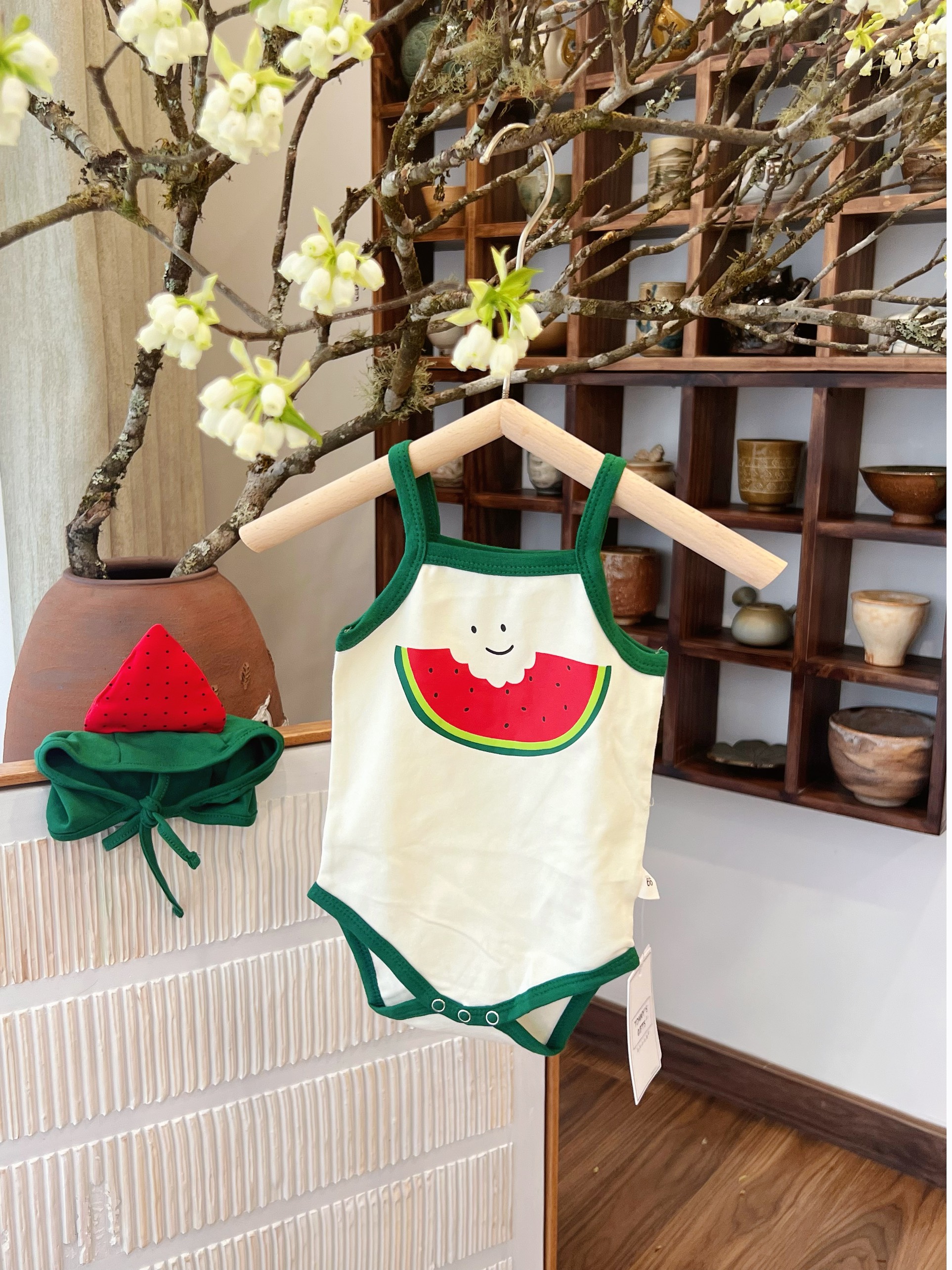 Body suit 2 dây kèm mũ hình dưa hấu.